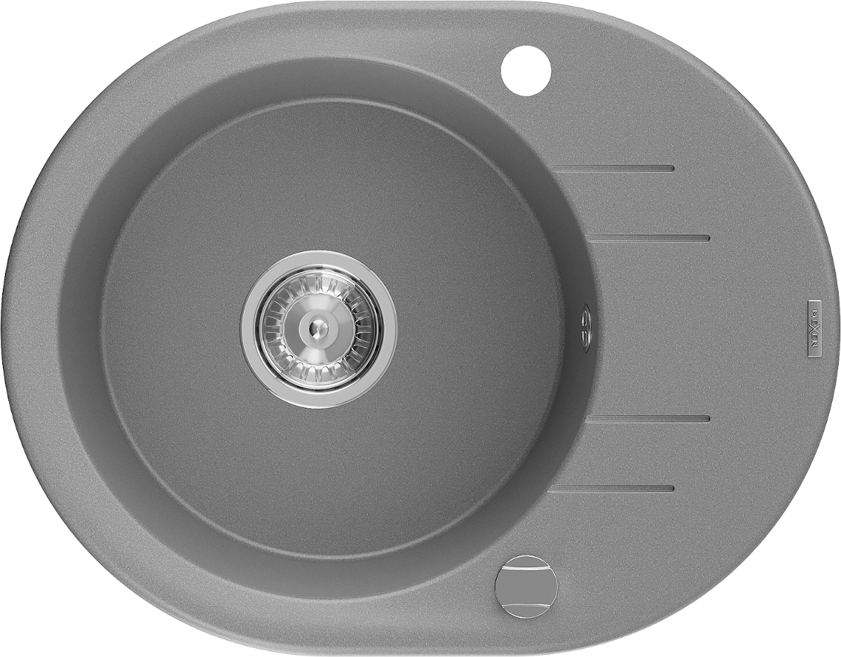 Mexen Kevin chiuvetă de granit cu 1 cuvă și scurgător 586 x 458 mm, gri, sifon crom - 6517581005-71