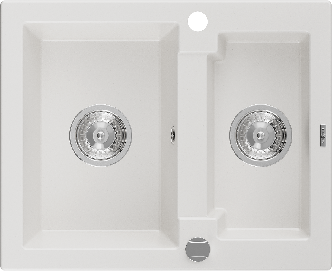 Mexen Carlos chiuvetă granit 1,5-camere 582 x 475 mm, alb, sifon crom - 6518581500-20