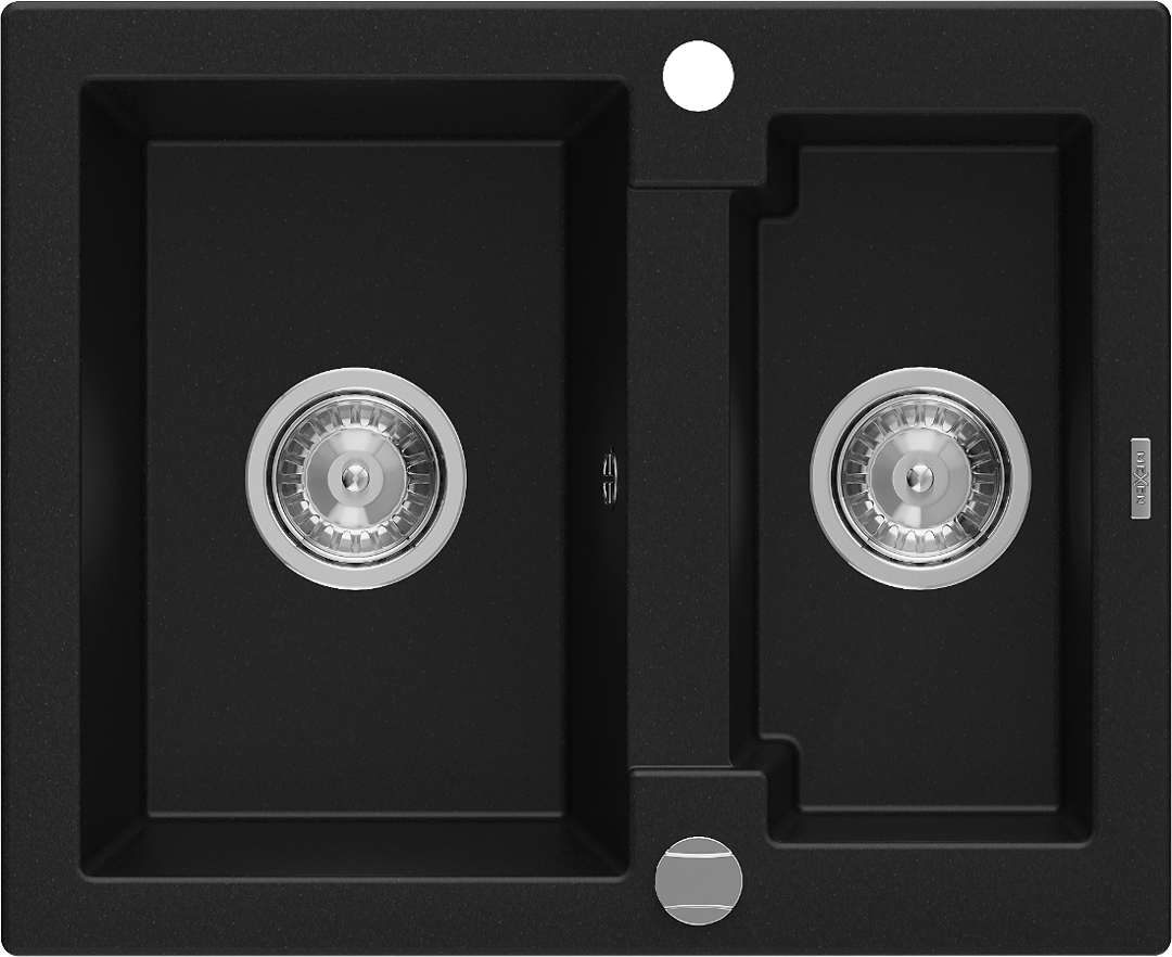 Mexen Carlos chiuvetă de granit 1,5 camere 582 x 475 mm, negru, sifon crom - 6518581500-77