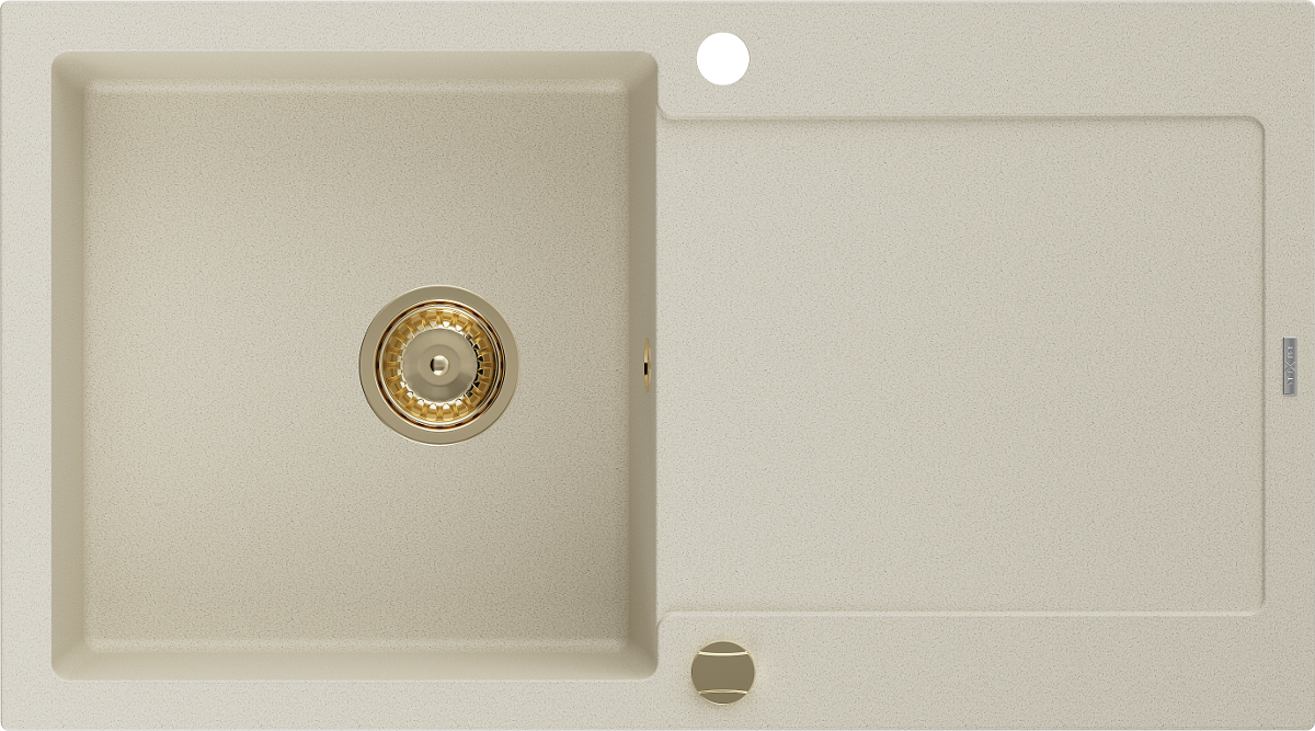 Mexen Leo chiuvetă de granit cu 1 cameră și picurător 900 x 500 mm, bej, sifon auriu - 6501901010-69-G