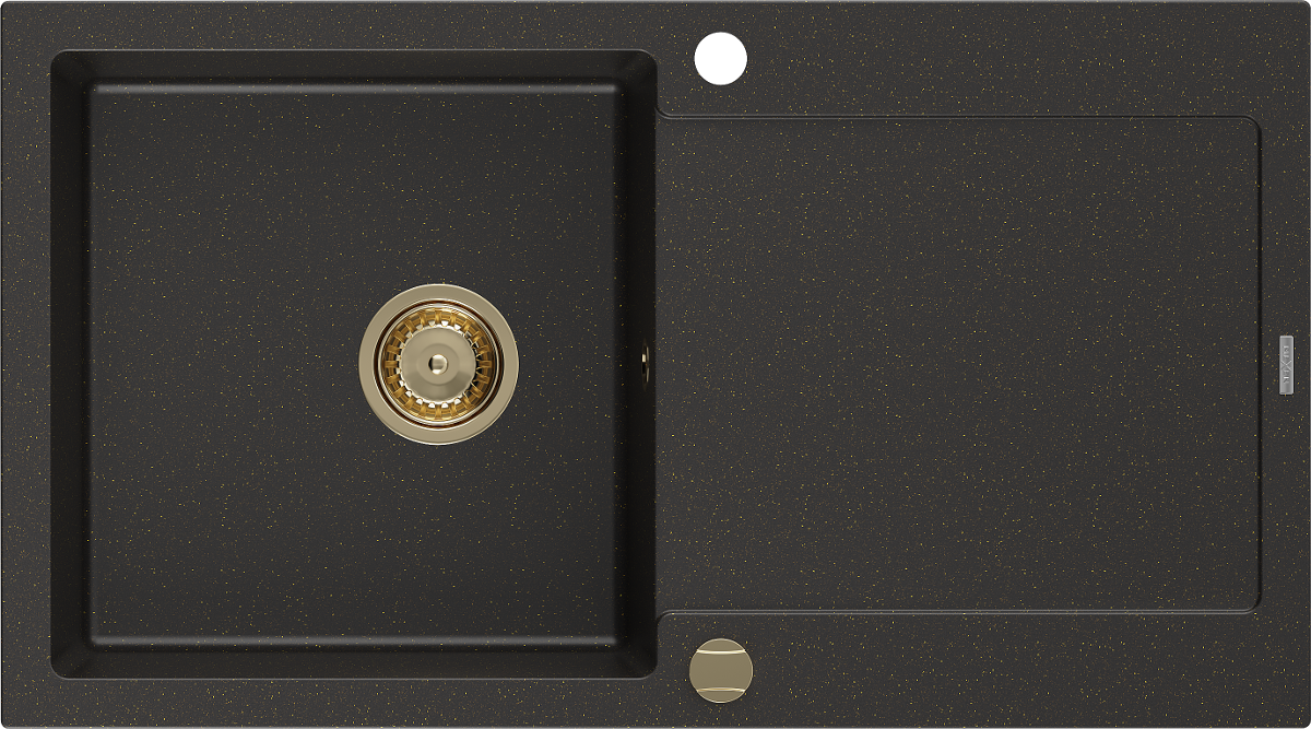 Mexen Leo chiuvetă de granit cu o singură cameră cu picurător 900 x 500 mm, negru/auriu metalic, sifon auriu - 6501901010-75-G