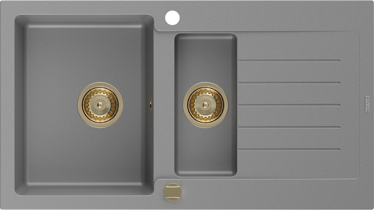 Mexen Matias chiuvetă din granit cu 1,5 compartimente și scurgător 900 x 505 mm, gri, sifon auriu - 6502901505-71-G