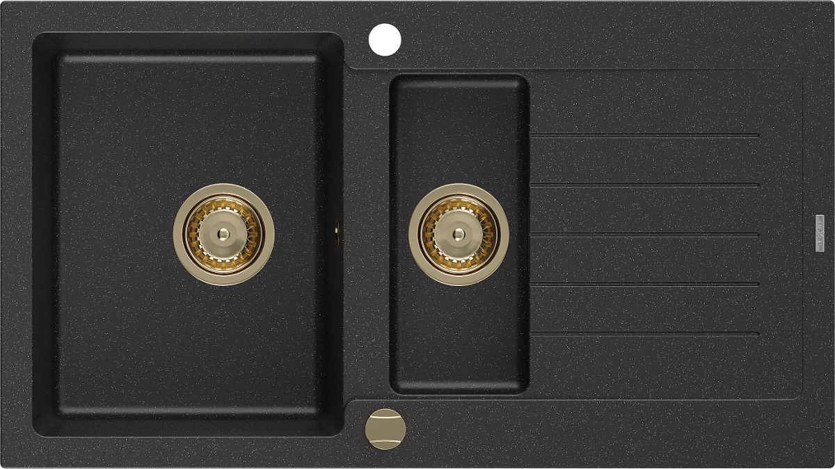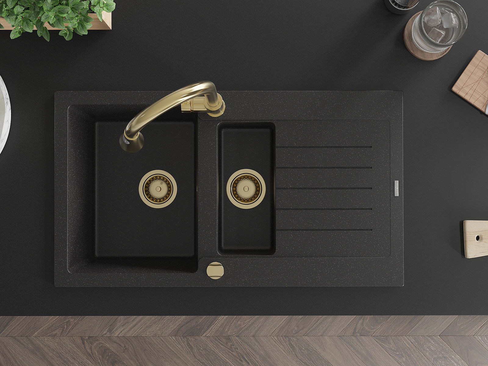 Mexen Matias chiuvetă de bucătărie granit 1,5-camere cu scurgător 900 x 505 mm, negru/argintiu metalic, sifon auriu - 650290150?