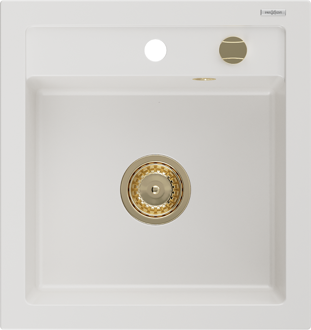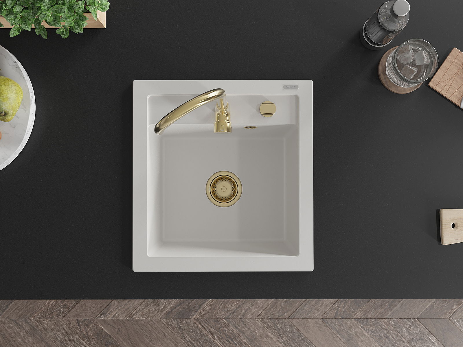 Mexen Vito chiuvetă de granit cu 1 compartiment 520 x 490 mm, alb, sifon auriu - 6503521000-20-G