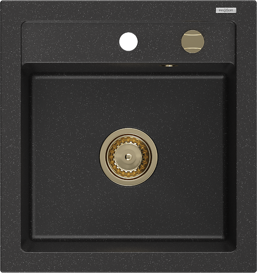 Mexen Vito chiuvetă granit 1 compartiment 520 x 490 mm, negru/argintiu metalizat, sifon auriu - 6503521000-73-G