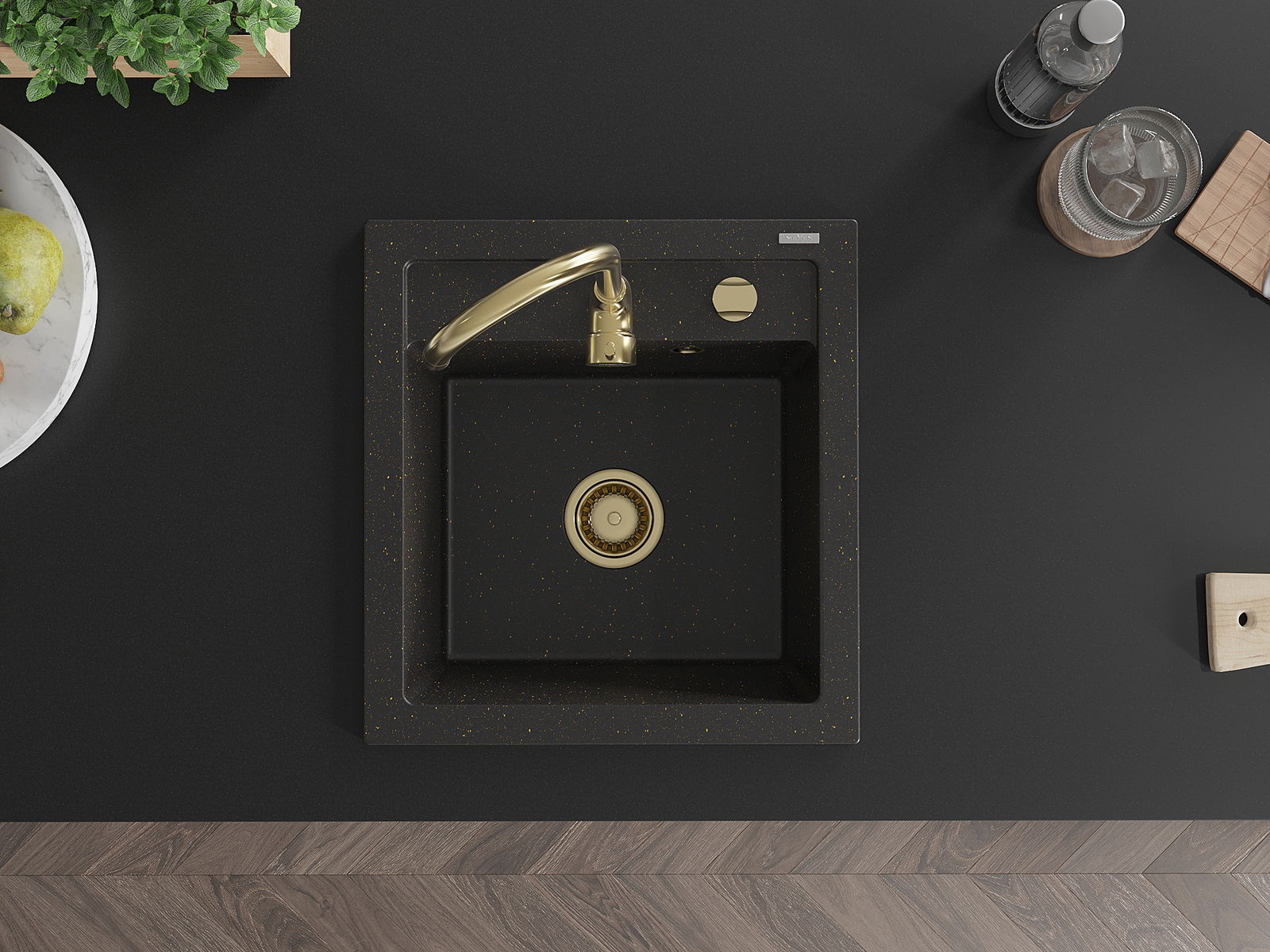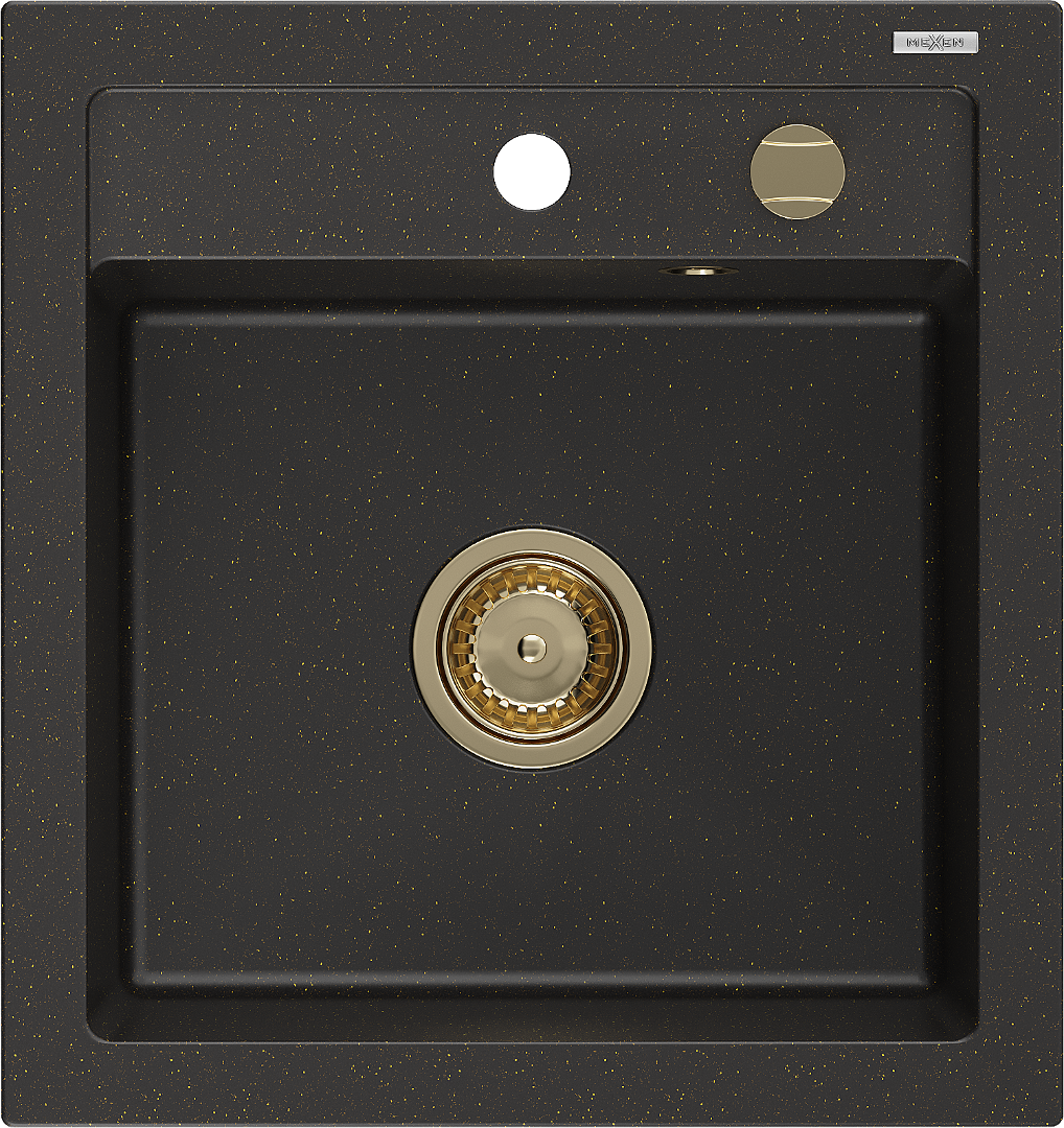 Mexen Vito chiuvetă din granit cu 1 compartiment 520 x 490 mm, negru/auriu metalizat, sifon auriu - 6503521000-75-G