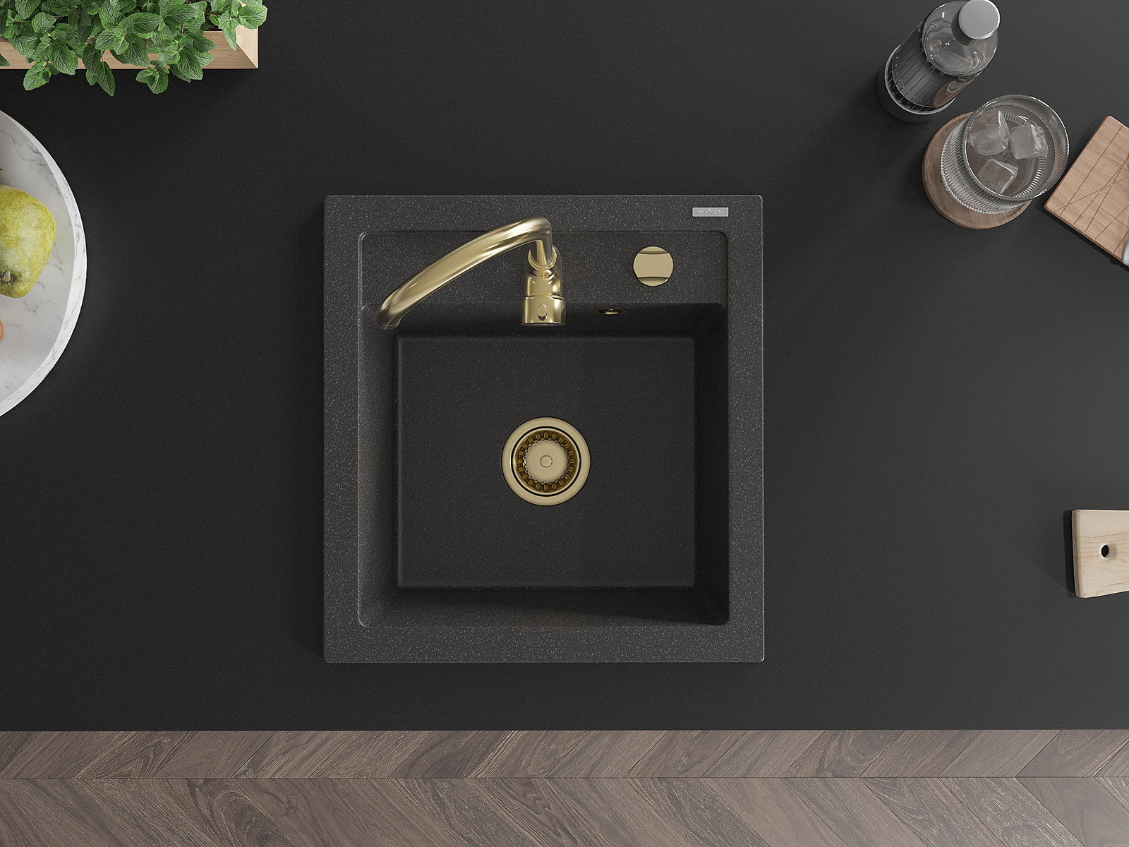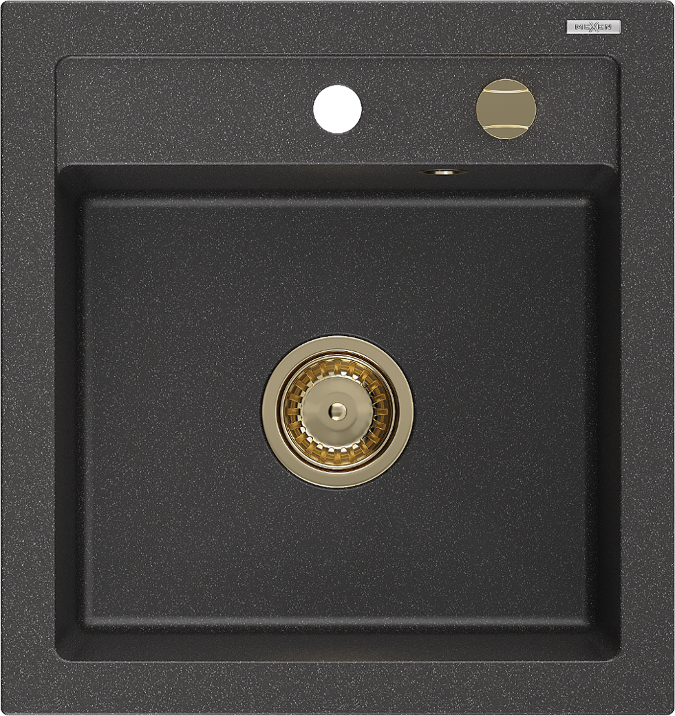 Mexen Vito chiuvetă de granit cu 1 compartiment 520 x 490 mm, negru cu stropi, sifon auriu - 6503521000-76-G