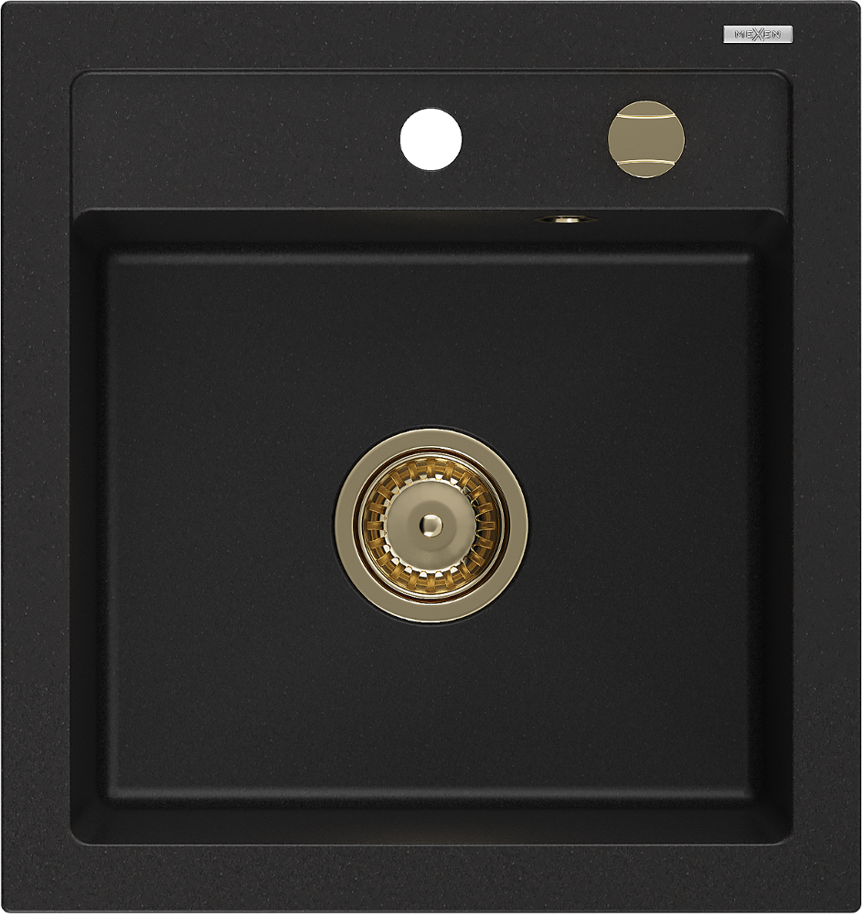 Mexen Vito chiuvetă de granit cu 1 compartiment 520 x 490 mm, negru, sifon auriu - 6503521000-77-G