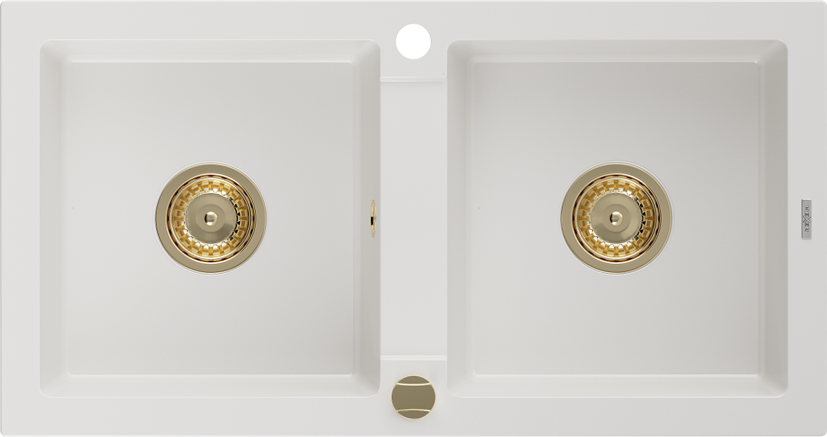 Mexen Mario chiuvetă de bucătărie din granit cu 2 compartimente 820 x 436 mm, alb, sifon auriu - 6504822000-20-G