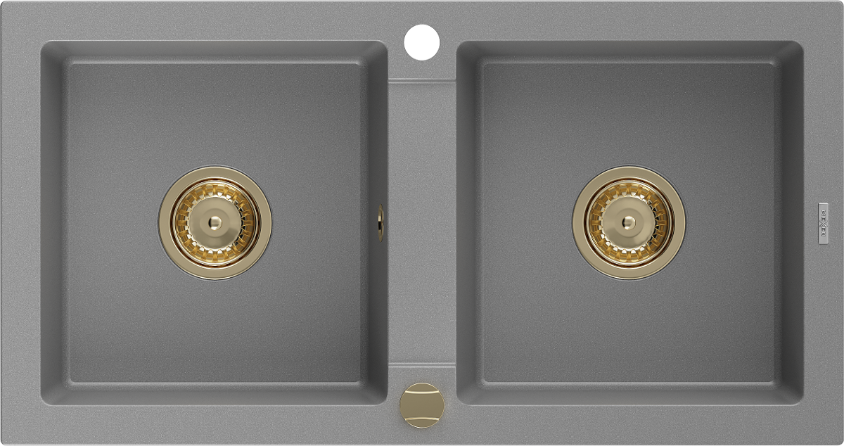Mexen Mario chiuvetă din granit cu 2 compartimente 820 x 436 mm, gri, sifon auriu - 6504822000-71-G