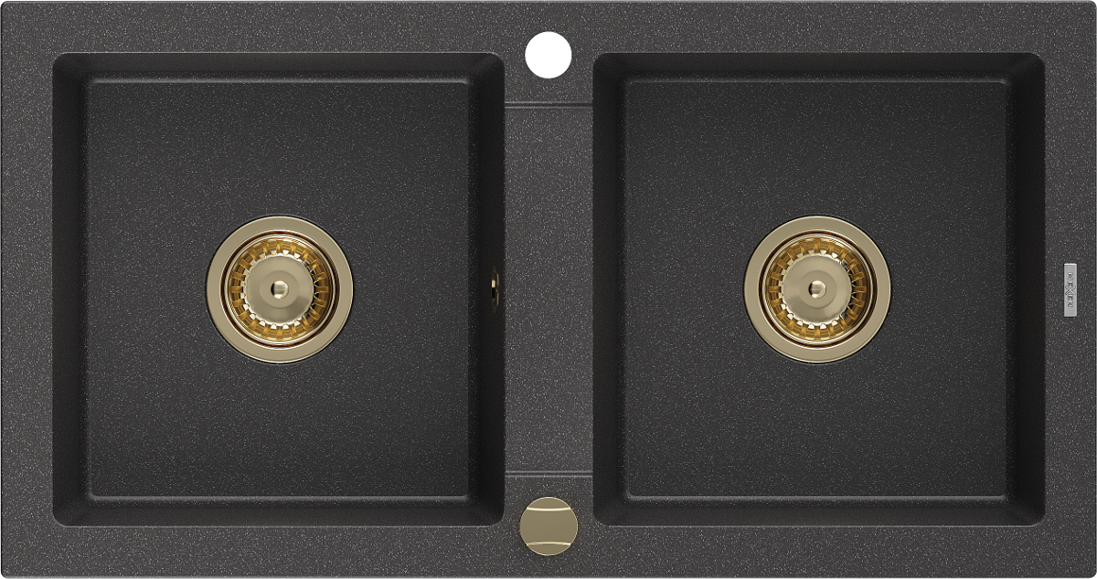 Mexen Mario chiuvetă de granit cu 2 compartimente 820 x 436 mm, negru pătat, sifon auriu - 6504822000-76-G
