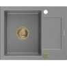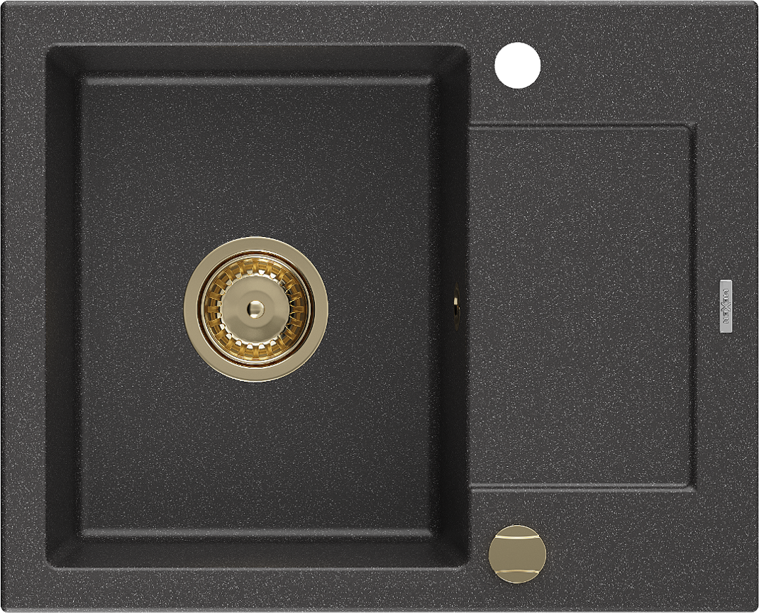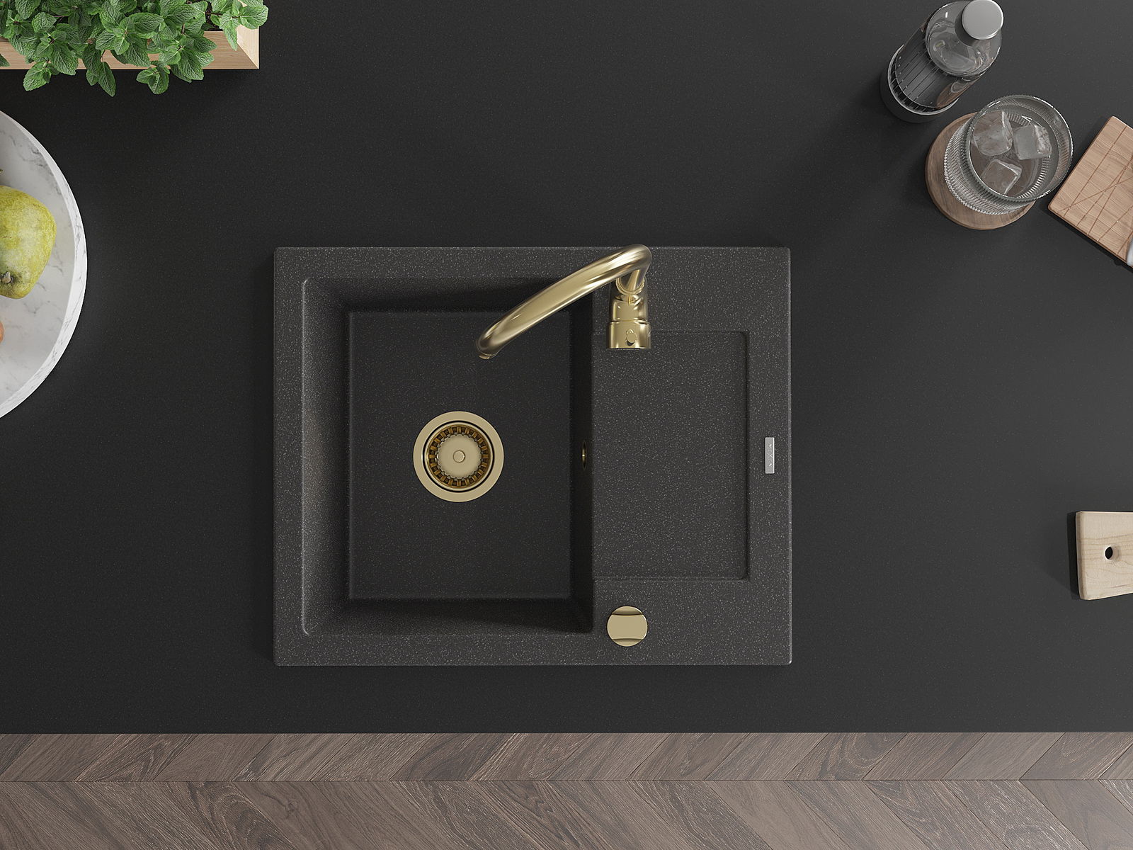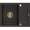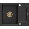 Mexen Enzo chiuvetă de bucătărie din granit cu 1 compartiment și scurgător 576 x 465 mm, neagră cu pete, sifon auriu