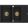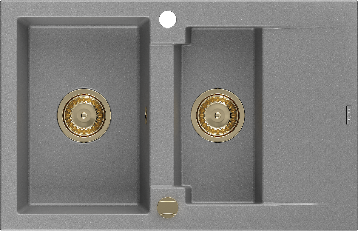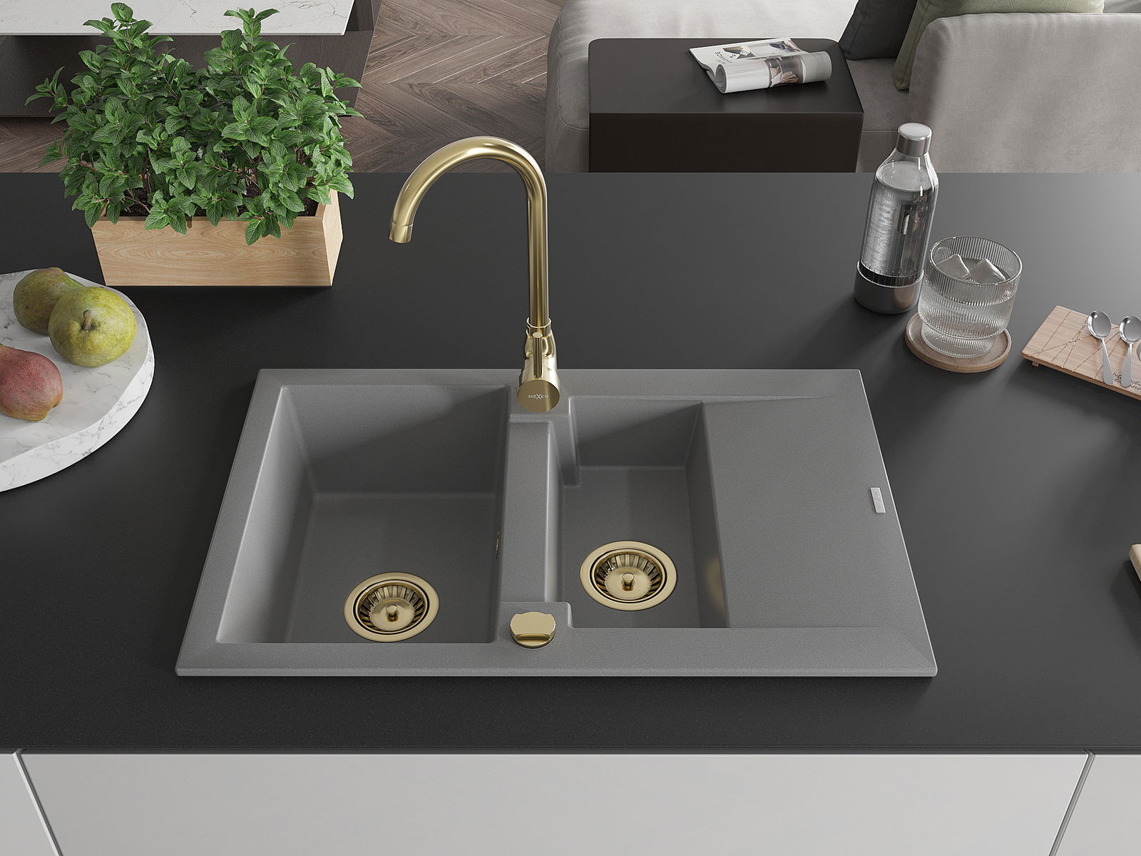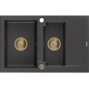 Mexen Gaspar chiuvetă din granit cu 1,5 compartimente și scurgător 737 x 475 mm, gri, sifon auriu - 6507731505-71-G