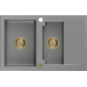 Mexen Gaspar chiuvetă de bucătărie din granit cu 1,5 cuve și scurgător 737 x 475 mm, negru/argintiu metalic, sifon auriu