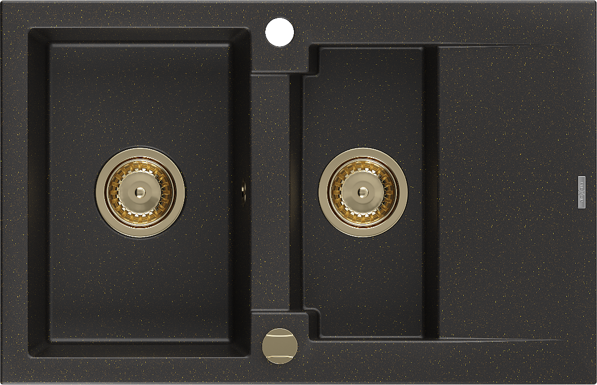 Mexen Gaspar chiuvetă de granit 1,5 camere cu picurător 737 x 475 mm, negru/auriu metalizat, sifon auriu - 6507731505-75-G