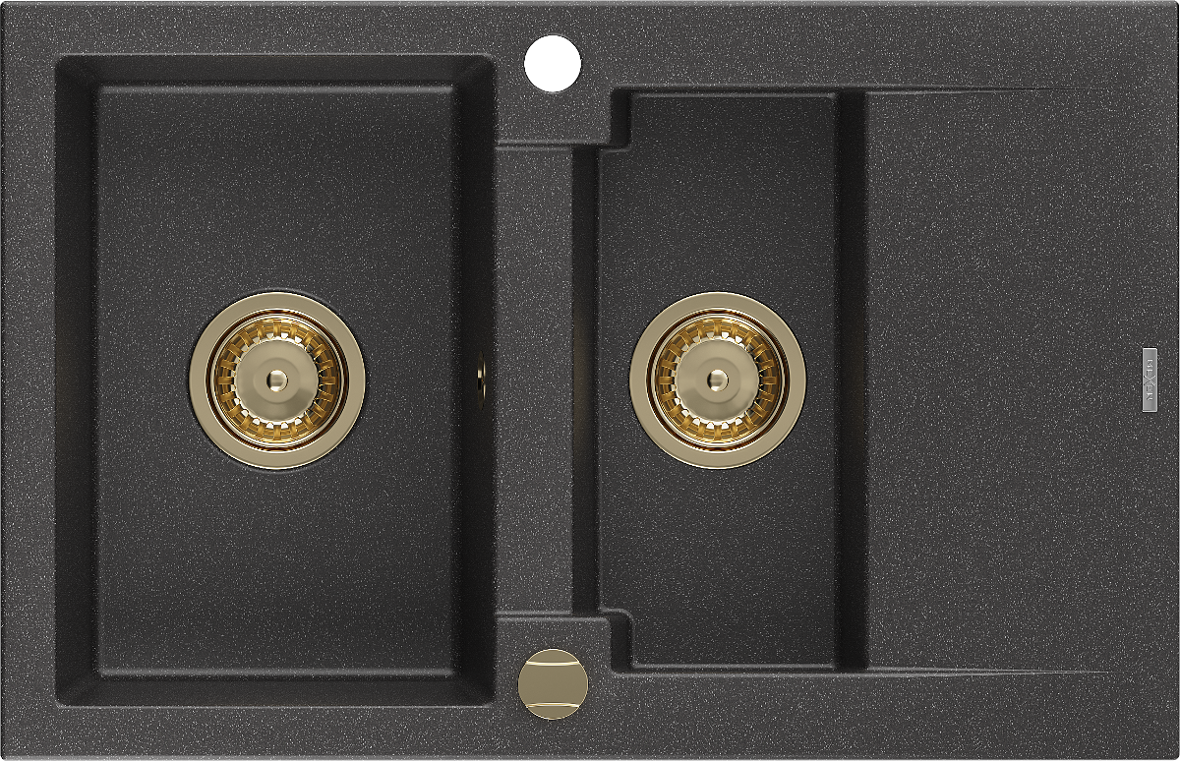 Mexen Gaspar chiuvetă granit 1,5-cameră cu scurgător 737 x 475 mm, negru pătat, sifon auriu - 6507731505-76-G