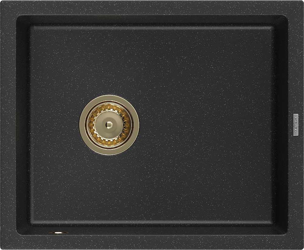 Chiuvetă granit Mexen Pedro cu 1 compartiment 560 x 460 mm, negru/argintiu metalizat, sifon auriu - 6508561000-73-G