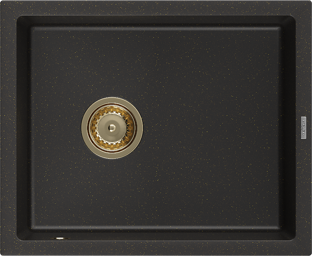 Mexen Pedro chiuvetă de granit cu 1 compartiment 560 x 460 mm, negru/auriu metalizat, sifon auriu - 6508561000-75-G