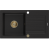 Mexen Pablo chiuvetă din granit cu 1 compartiment și scurgător 752 x 436 mm, negru/auriu metalic, sifon auriu - 6510751010-75-G