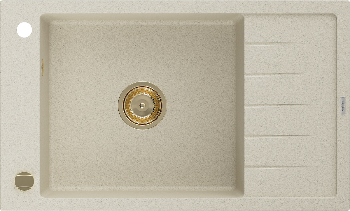 Mexen Elias chiuvetă de granit cu 1 compartiment și scurgător 795 x 480 mm, bej, sifon auriu - 6511791005-69-G
