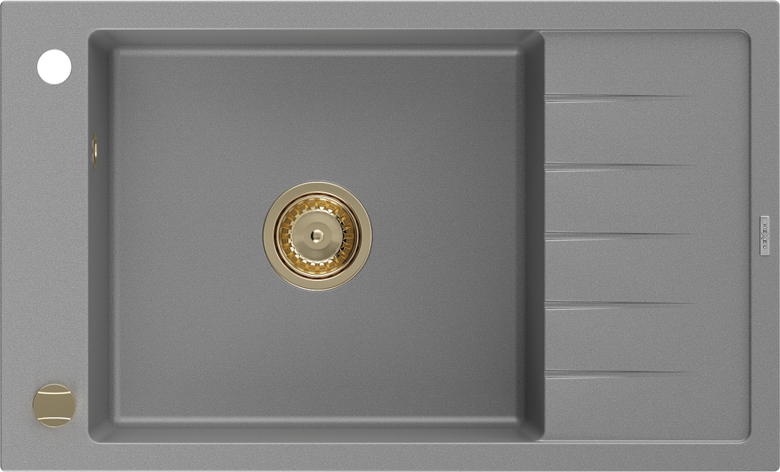 Mexen Elias chiuvetă din granit cu 1 compartiment și scurgător 795 x 480 mm, gri, sifon auriu - 6511791005-71-G