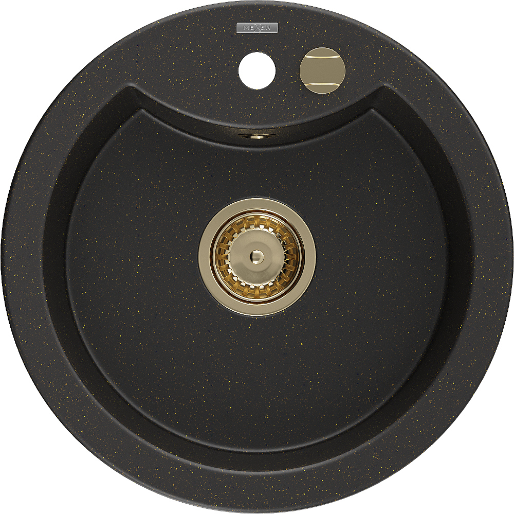 Mexen Diego chiuvetă din granit cu o cuvă 488 x 480 mm, negru/auriu metalic, sifon auriu - 6512481000-75-G