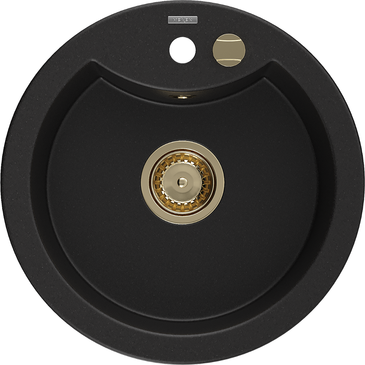 Mexen Diego chiuvetă de granit cu 1 compartiment 488 x 480 mm, negru, sifon auriu - 6512481000-77-G
