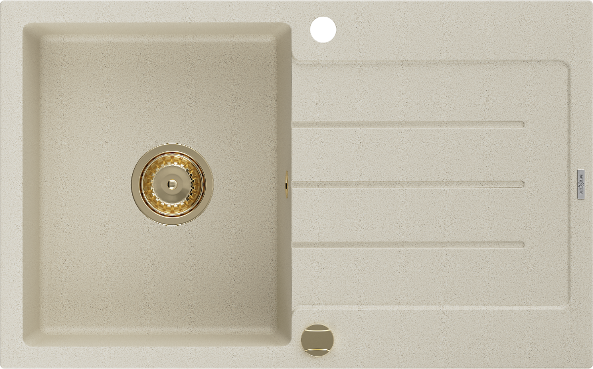 Mexen Bruno chiuvetă de granit cu 1 compartiment și scurgător 795 x 495 mm, bej, sifon auriu - 6513791010-69-G