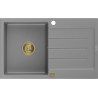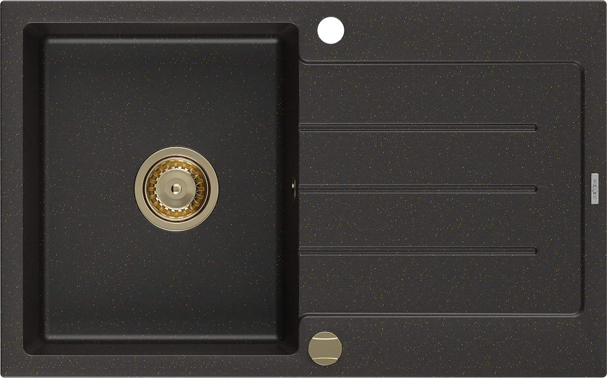 Mexen Bruno chiuvetă de granit cu o cuvă și picurător 795 x 495 mm, negru/auriu metalizat, sifon auriu - 6513791010-75-G