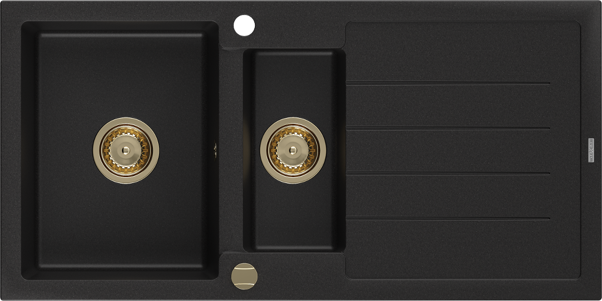 Mexen Andres chiuvetă din granit cu 1,5 camere cu scurgător 1000 x 500 mm negru, sifon auriu - 6515101510-77-G