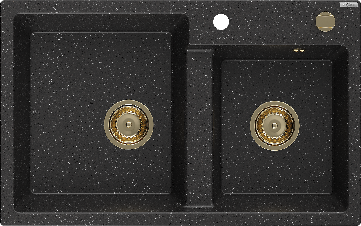 Mexen Tomas chiuvetă din granit cu 2 compartimente 800 x 500 mm, negru/argintiu metalic, sifon auriu - 6516802000-73-G