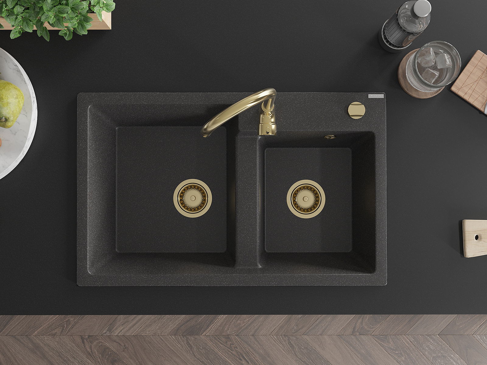 Chiuveta are o gaură prezentată cu un diametru de 35 mm pentru auto -burst. Poate fi folosit, printre altele Pentru montarea unui distribuitor de lichid care va elimina prezența sticlelor de plastic în bucătărie și îi va oferi un finisaj elegant.