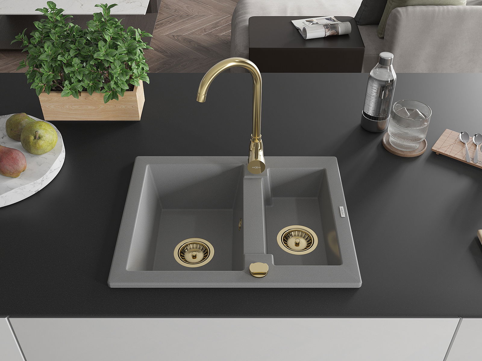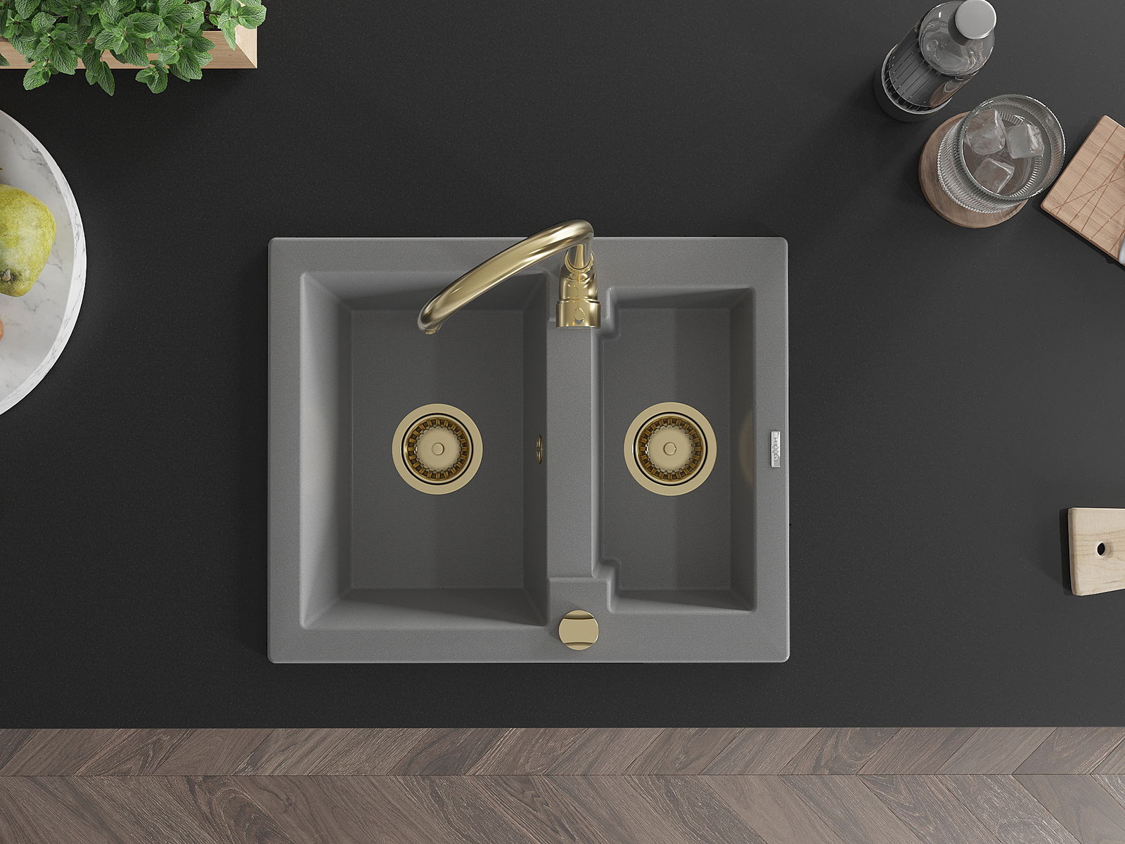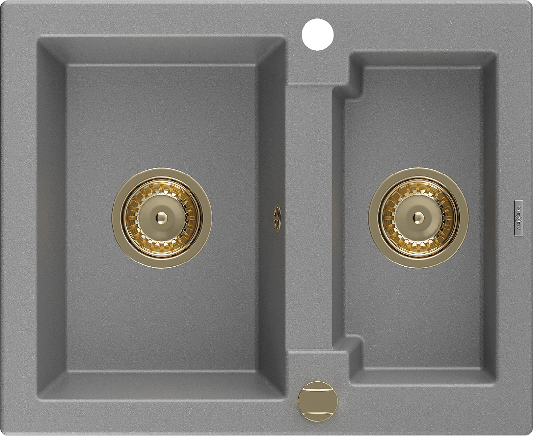 Mexen Carlos chiuvetă de granit cu 1,5 compartimente 582 x 475 mm, gri, sifon auriu - 6518581500-71-G