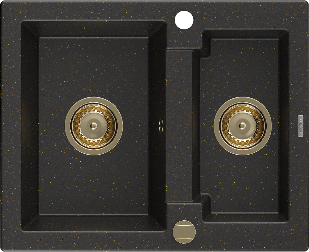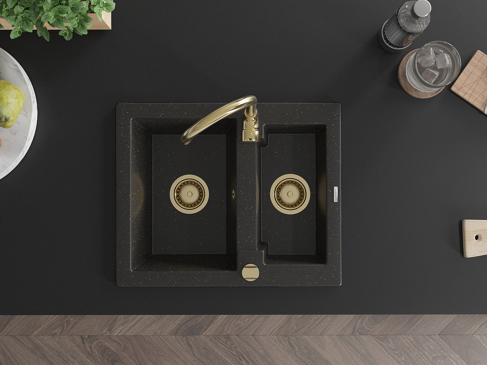 Mexen Carlos chiuvetă din granit cu 1,5 cuve 582 x 475 mm, negru/auriu metalizat, sifon auriu - 6518581500-75-G