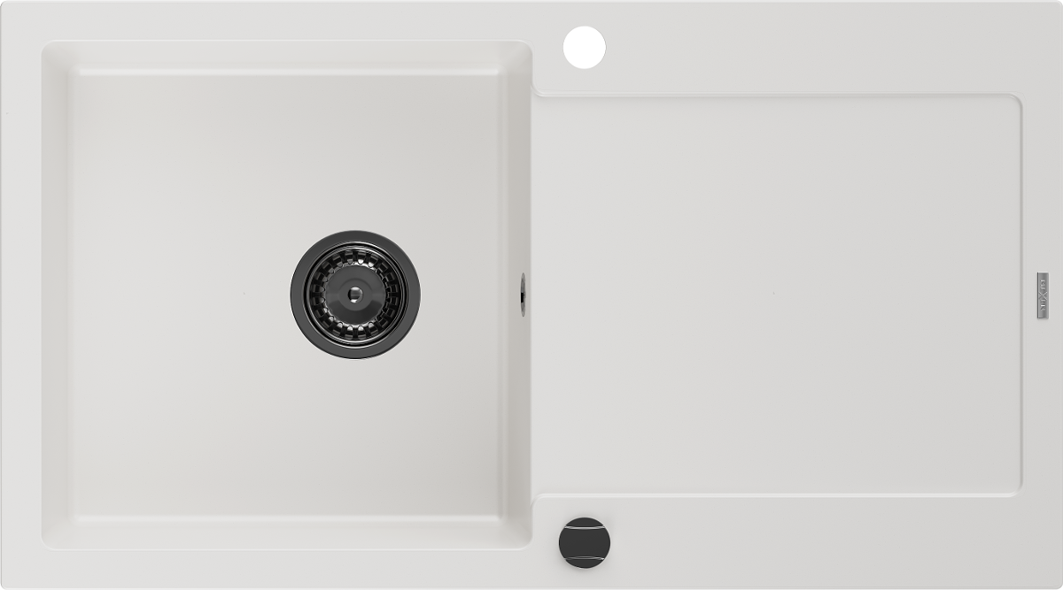 Mexen Leo chiuvetă din granit cu 1 compartiment și scurgător 900 x 500 mm, alb, sifon negru - 6501901010-20-B