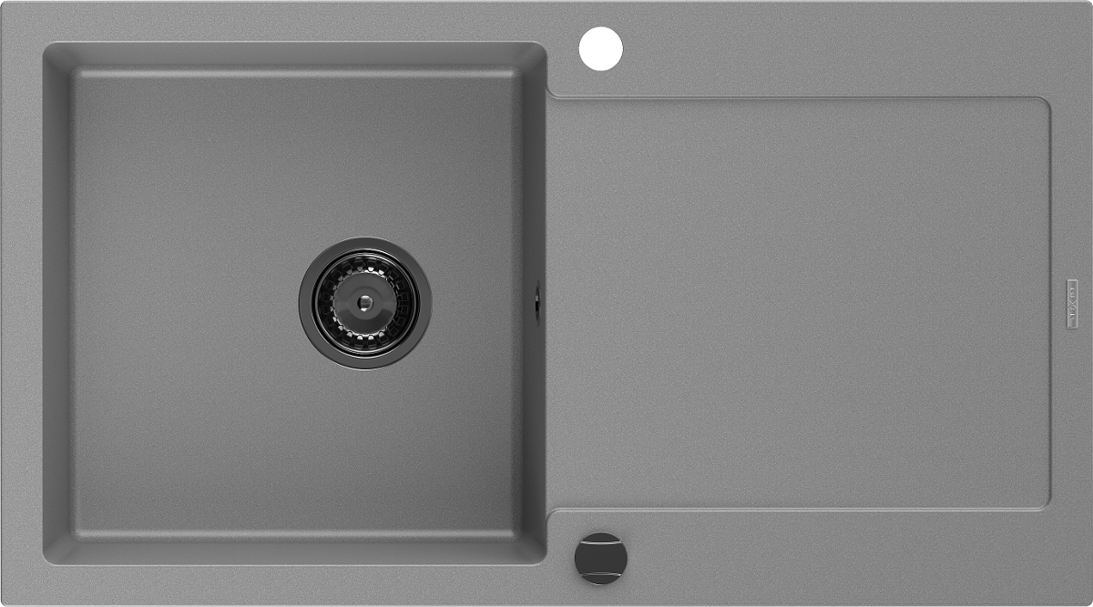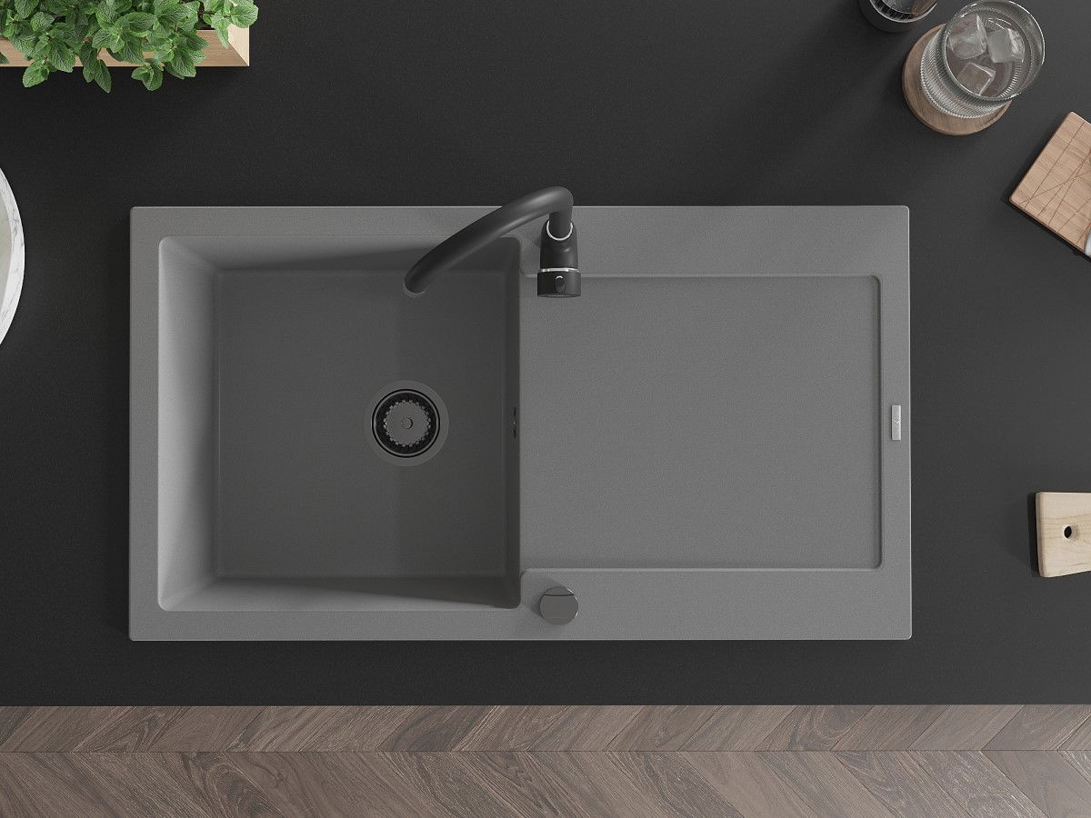 Mexen Leo chiuvetă de granit cu 1 compartiment și picurător 900 x 500 mm, gri, sifon negru - 6501901010-71-B