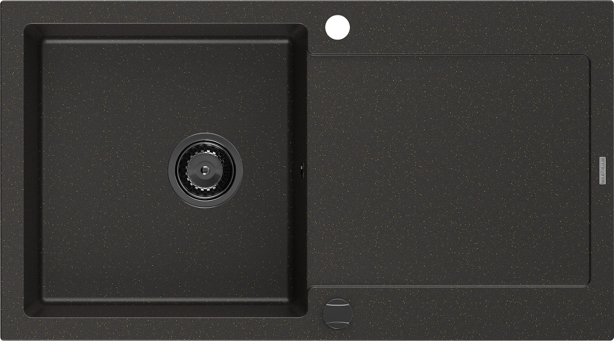 Mexen Leo chiuvetă granitică cu 1 compartiment cu scurgător 900 x 500 mm, negru/auriu metalizat, sifon negru