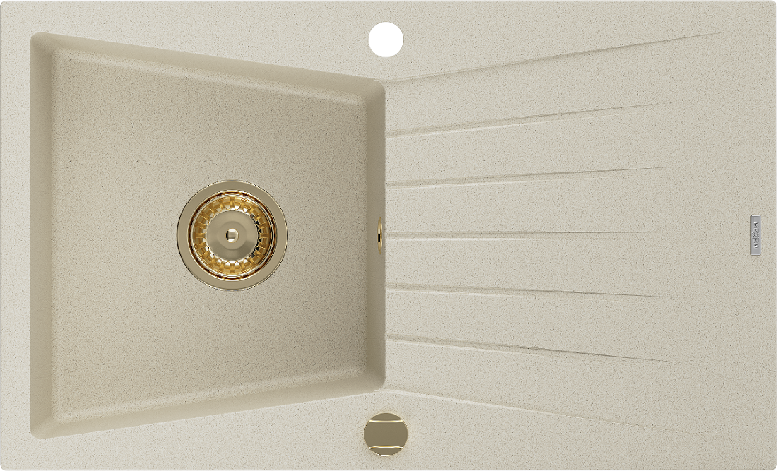 Mexen Cesar chiuvetă de granit cu o singură cuvă și scurgător 775 x 470 mm, bej, sifon auriu - 6514771010-69-G