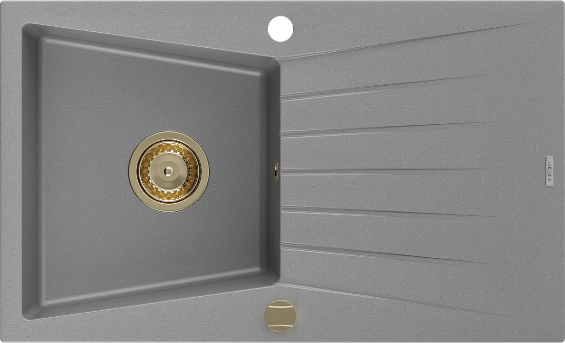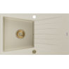 Mexen Cesar chiuvetă de granit cu o cuvă și scurgător 775 x 470 mm, gri, sifon auriu - 6514771010-71-G