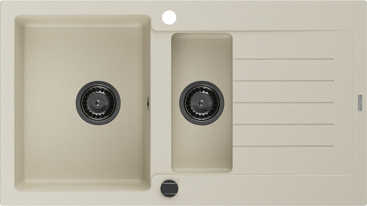 Mexen Matias chiuvetă de granit cu 1,5 cuve cu scurgător 900 x 505 mm, bej, sifon negru - 6502901505-69-B