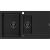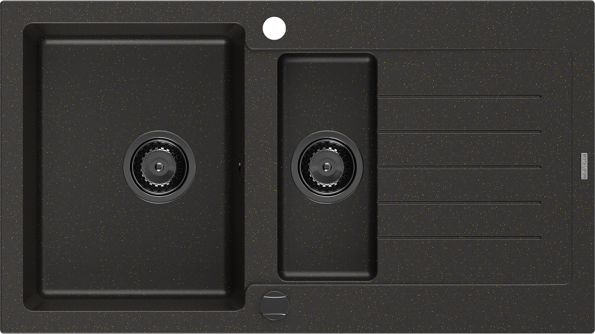 Mexen Matias chiuvetă din granit, cu 1,5 cuve și scurgător, 900 x 505 mm, negru/oro metalic, sifon negru - 6502901505-75-B