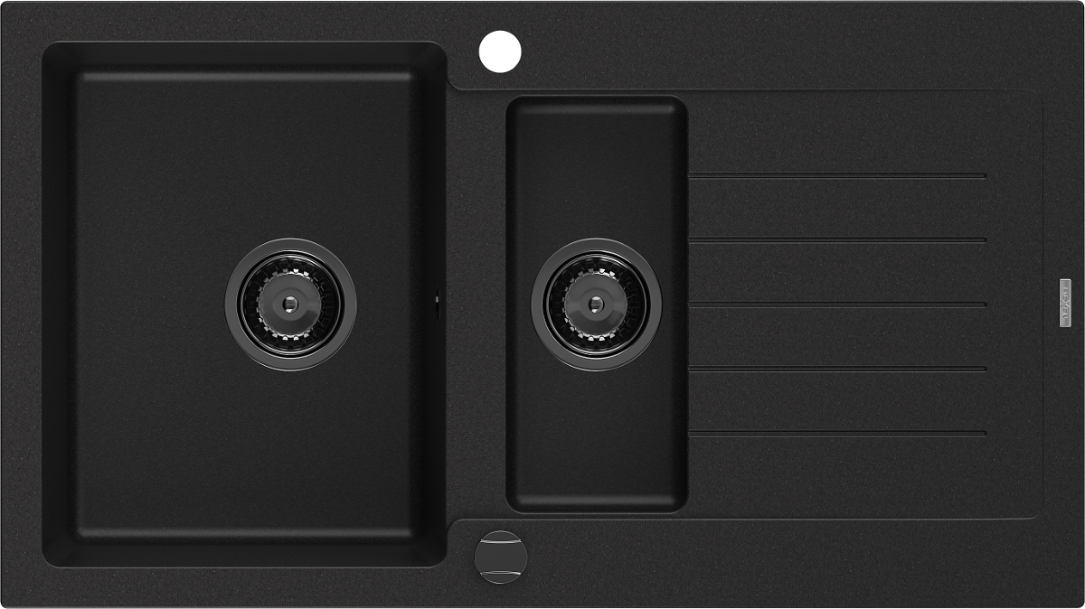 Mexen Matias chiuvetă din granit cu 1,5 camere și scurgător 900 x 505 mm, negru, sifon negru - 6502901505-77-B