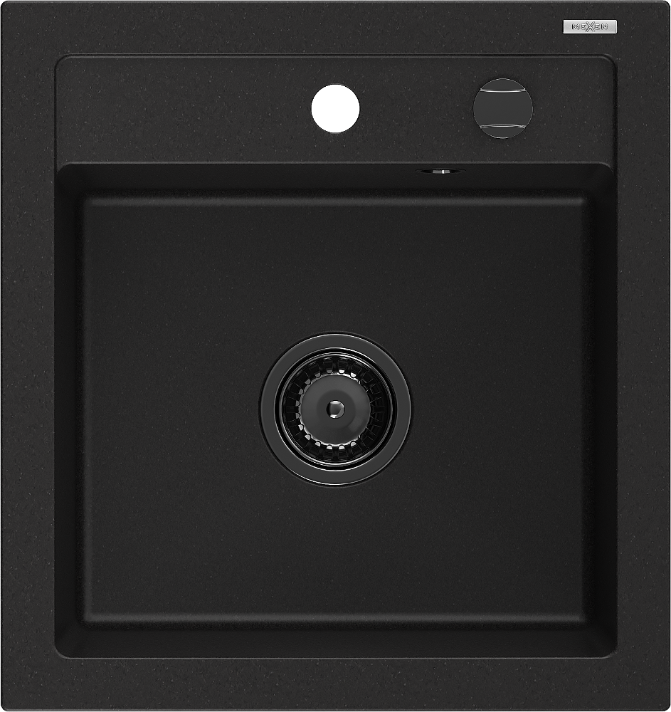 Mexen Vito chiuvetă de granit cu 1 cameră, 520 x 490 mm, negru, sifon negru - 6503521000-77-B