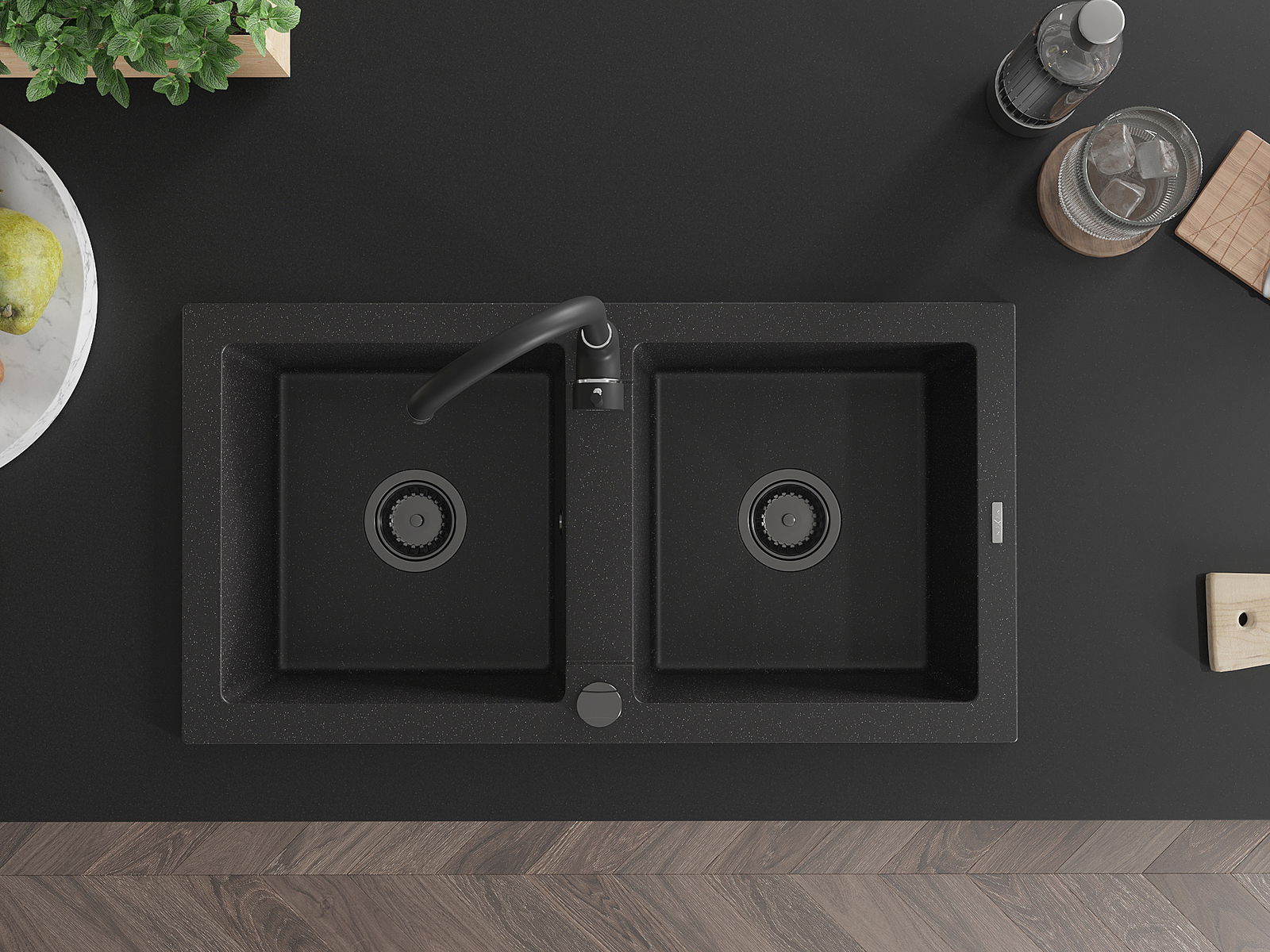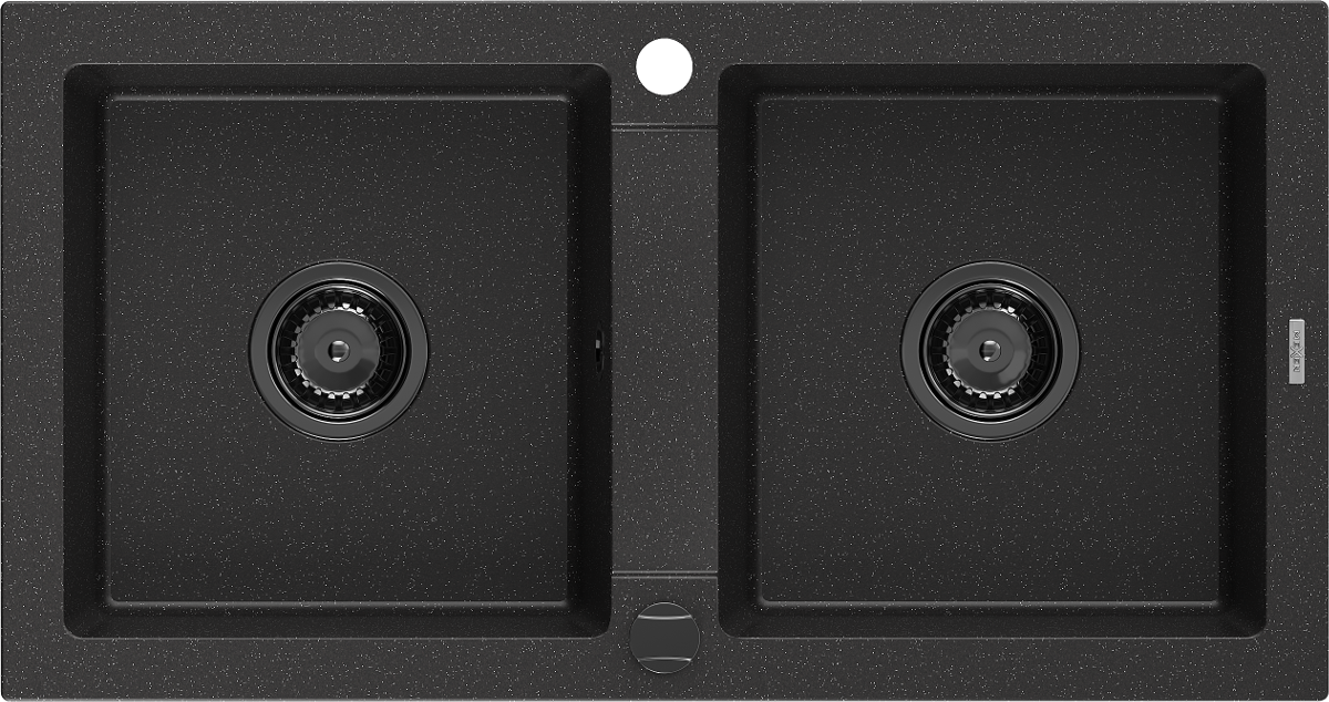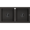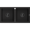 Mexen Mario chiuvetă de granit cu 2 cuve 820 x 436 mm, neagră/argintiu metalizat, sifon negru - 6504822000-73-B
