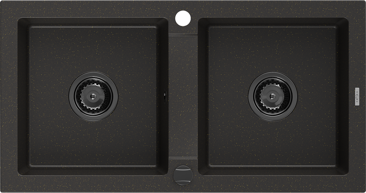 Mexen Mario chiuvetă de bucătărie granit 2 compartimente 820 x 436 mm, negru/auriu metalic, sifon negru - 6504822000-75-B