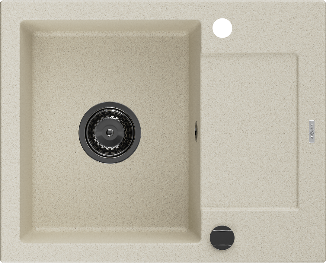 Mexen Enzo chiuvetă de bucătărie din granit cu 1 compartiment și picurător 576 x 465 mm, bej, sifon negru - 6506571005-69-B