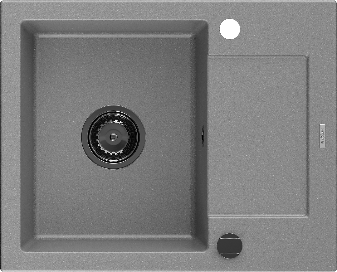 Mexen Enzo chiuvetă de granit cu o cuvă și scurgător 576 x 465 mm, gri, sifon negru - 6506571005-71-B