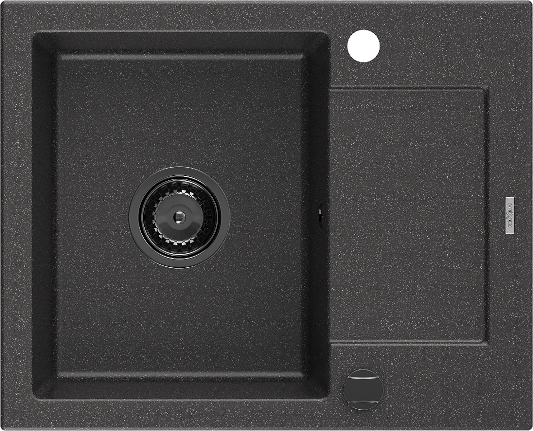 Mexen Enzo chiuvetă de granit cu 1 compartiment și scurgător 576 x 465 mm, negru pătat, sifon negru - 6506571005-76-B