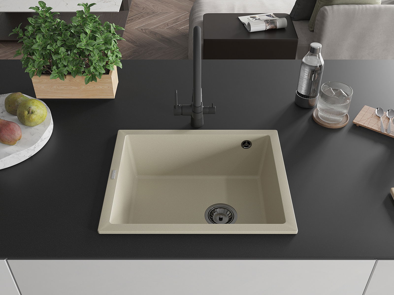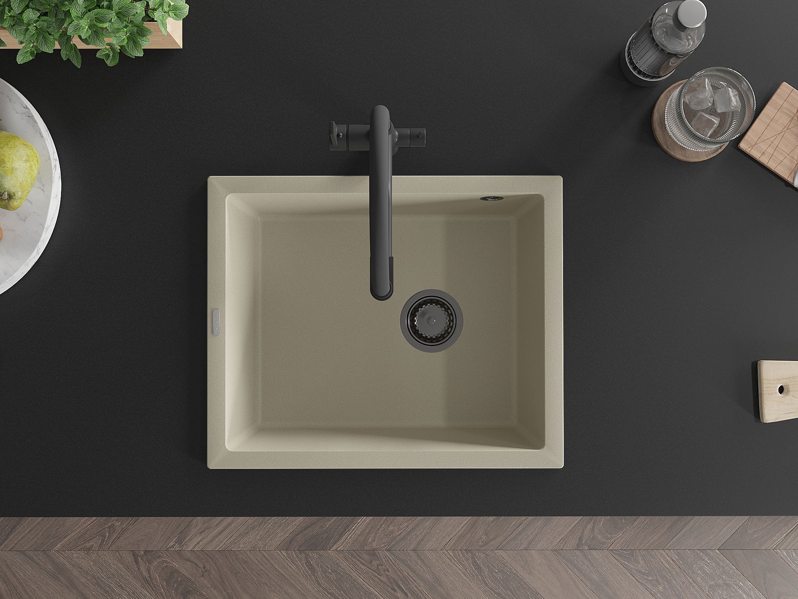 Suprafața chiuvetei este rezistentă la pete și decolorarea, datorită căreia este ușor de curățat și își păstrează culoarea mult timp. Estetică și practic completarea fiecărei bucătării.