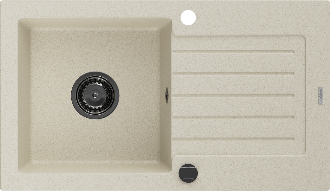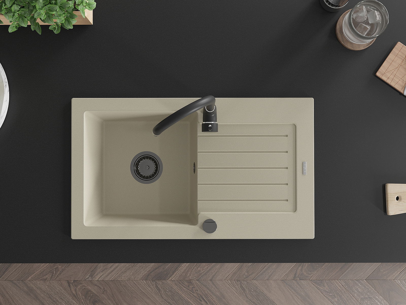 Mexen Pablo chiuvetă din granit cu o cuvă și scurgător 752 x 436 mm, bej, sifon negru - 6510751010-69-B